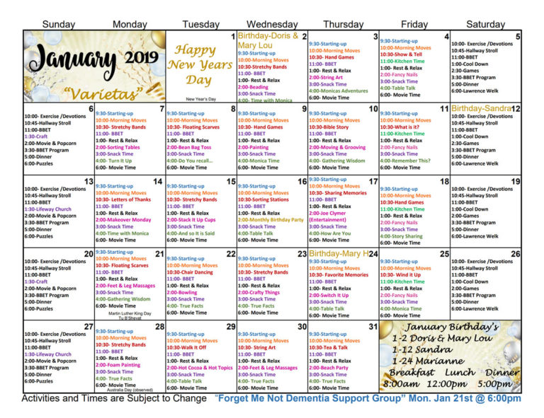 Check Out January 2019 Memory Care Activities at Traditions at Reagan Park