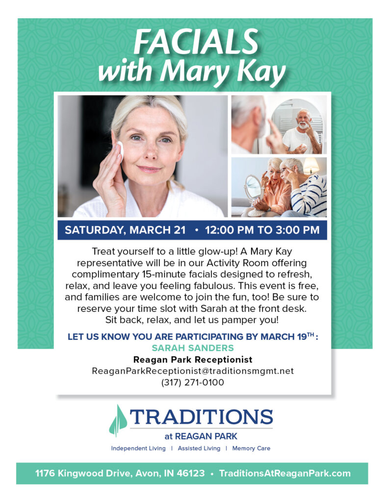 Treat yourself to a little glow-up! A Mary Kay representative will be in our Activity Room offering complimentary 15-minute facials designed to refresh, relax, and leave you feeling fabulous. This event is free, and families are welcome to join the fun, too! Be sure to reserve your time slot with Sarah at the front desk. Sit back, relax, and let us pamper you!