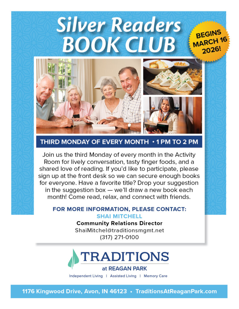 Join us the third Monday of every month in the Activity Room for lively conversation, tasty finger foods, and a shared love of reading. If you’d like to participate, please sign up at the front desk so we can secure enough books for everyone. Have a favorite title? Drop your suggestion in the suggestion box — we’ll draw a new book each month! Come read, relax, and connect with friends.