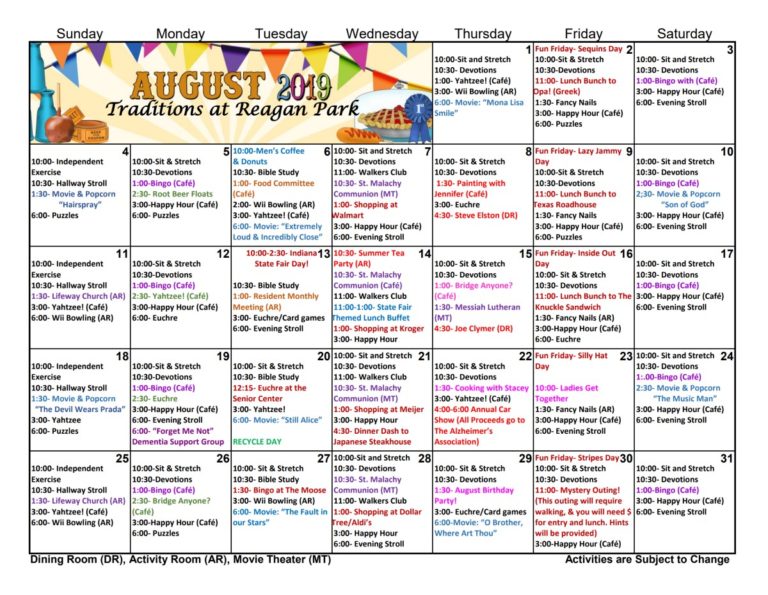 Check Out August 2019 Assisted Living Activities at Traditions at Reagan Park